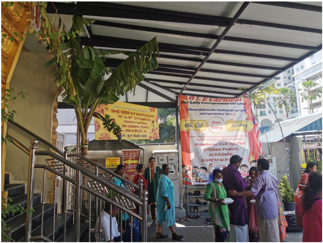 从博物馆出来后,直奔上午的黑天神印度庙。进门发现左右两边大厅很多摊贩,卖装饰品、小吃、衣服,五花八门,这才知道这个活动是为印度女性商贩举办的集会,可以兜售商品,也有妇女儿童表演,全社区一家老小出动,场面像村里集会一样温馨热闹。