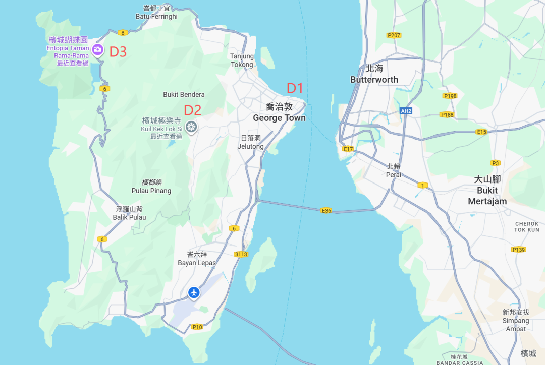 • 溜街:用谷歌地图,找餐馆也可。不过马来西亚对步行者不太友好,不论哪个城市都很少人行道、红绿灯,全靠在车流中横穿马路,而且街上行道树少,大太阳非常晒;