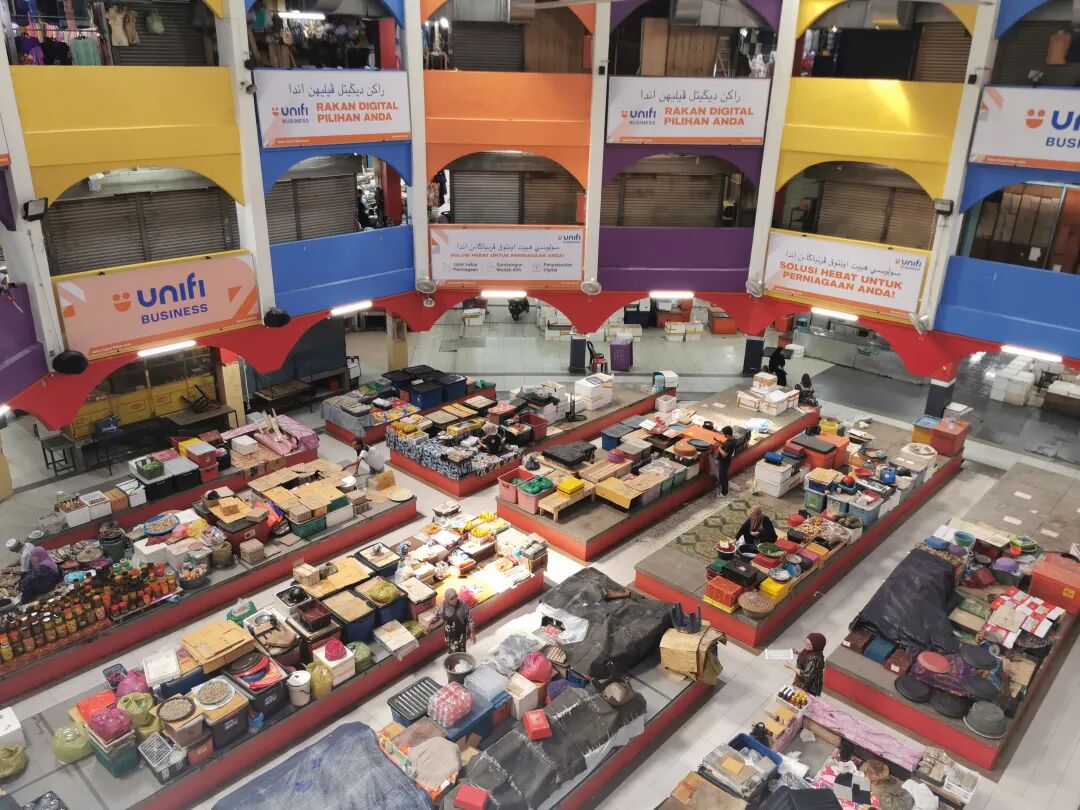 我又让Sam送我回四天前住的酒店,酒店看了我的入住记录后慷慨答应寄存。Sam哥又不辞劳苦送我去了附近的大巴刹(Siti Khadijah Market),极力推荐那边的饭菜。我考虑到他主动带我白跑机场一趟,又送我回酒店,又送我到大巴刹,多给了他20马币,他诚恳道谢、友好告别。