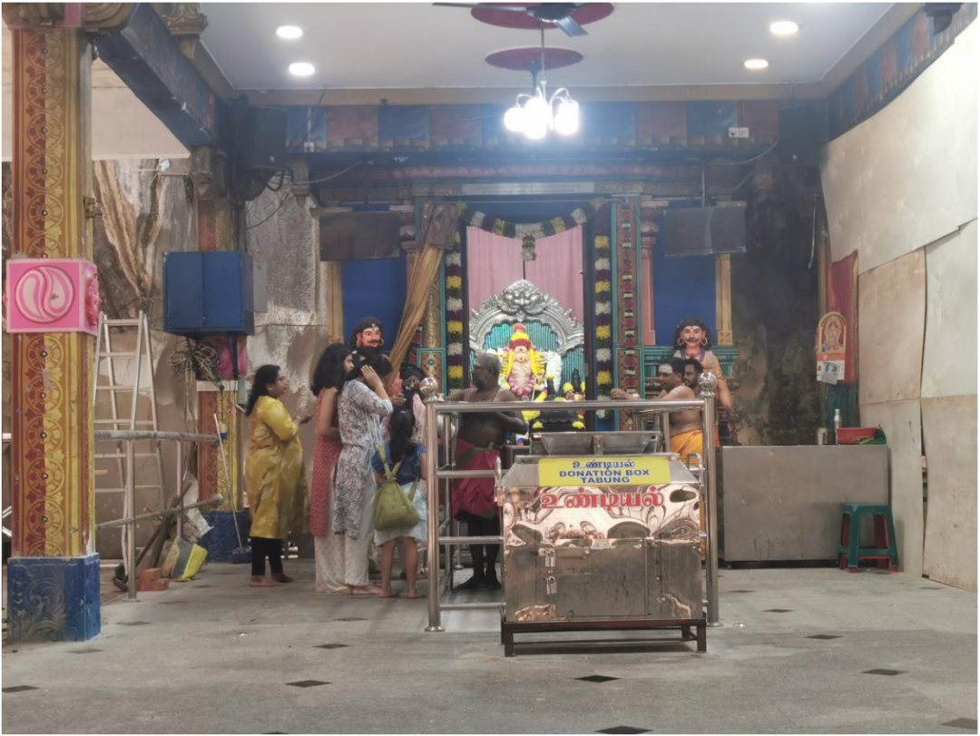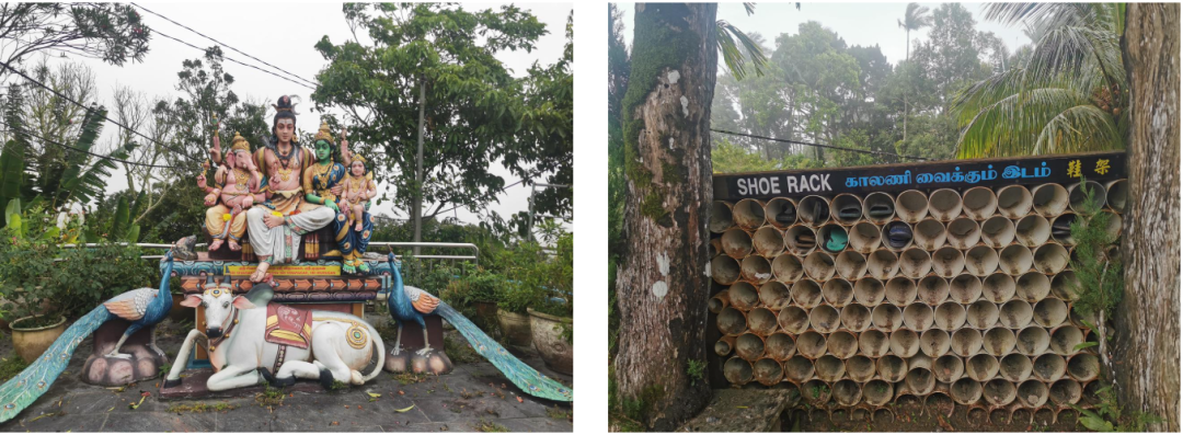 再往里走还是印度庙。这座庙就在一个敞开的崖壁下,简陋得像工地,但信众仍虔诚参拜。