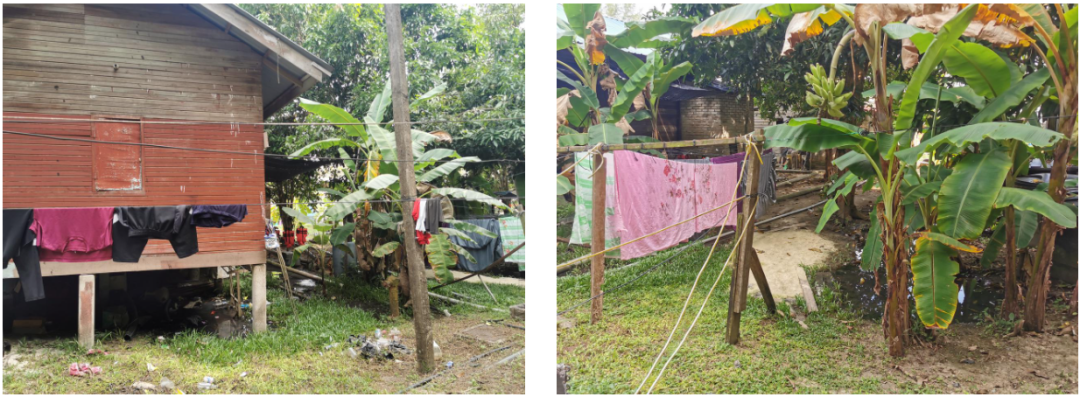 路旁是当地人居住的传统高脚屋,芭蕉树旁随意晾晒的床单,好像中国国民床单。