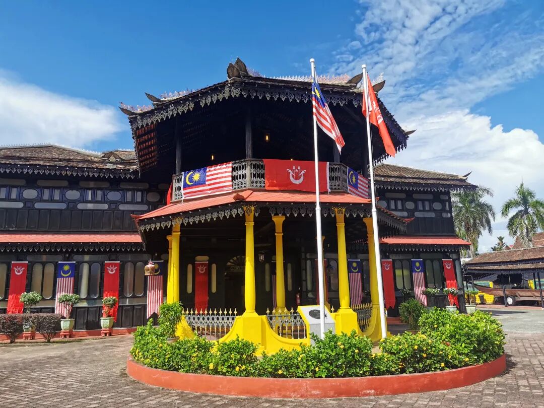 佳哈皇宫,展示了国王王后结婚、生子等用具、习俗,但禁止拍照。也有船、车、兵器展示,很有当地特色。门口票务员以为我是日本人,态度友善热情——要知道,日本曾在1941年12月从哥打巴鲁入侵并肆虐马来西亚……