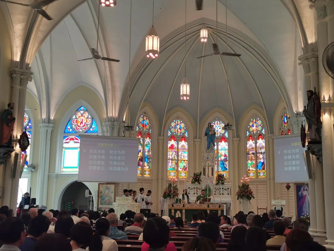 里边正在举行主日礼拜,一位白人牧师用华语主持仪式,带领信众唱经祷告,收获心灵的安宁。