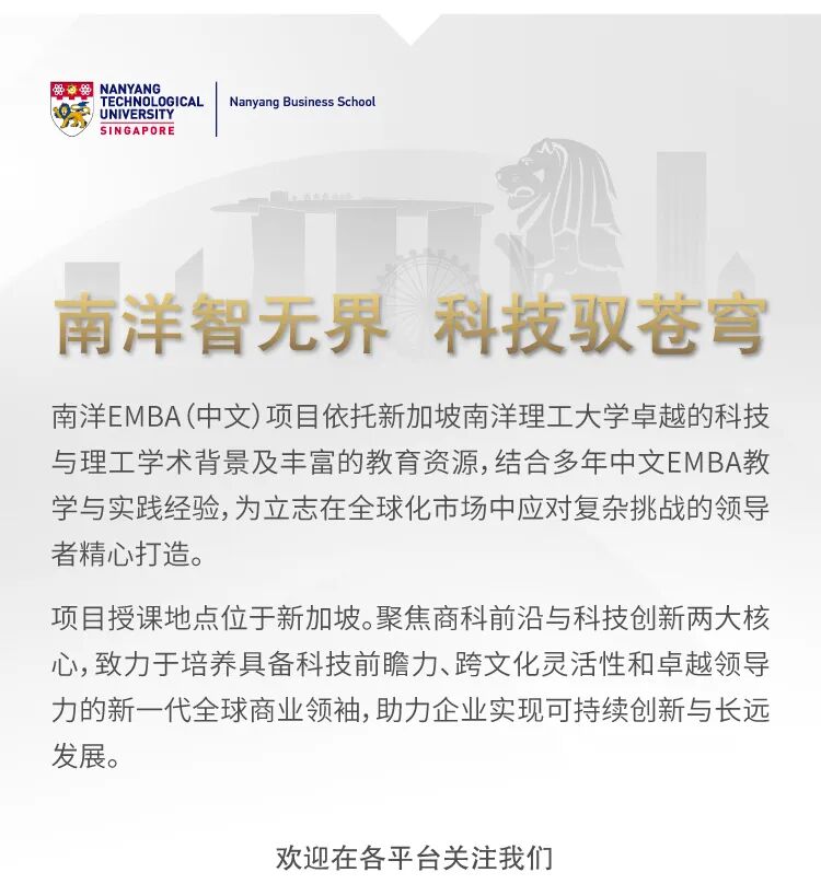点击上方新加坡南洋理工大学中文EMBA主页右上角…设为星标